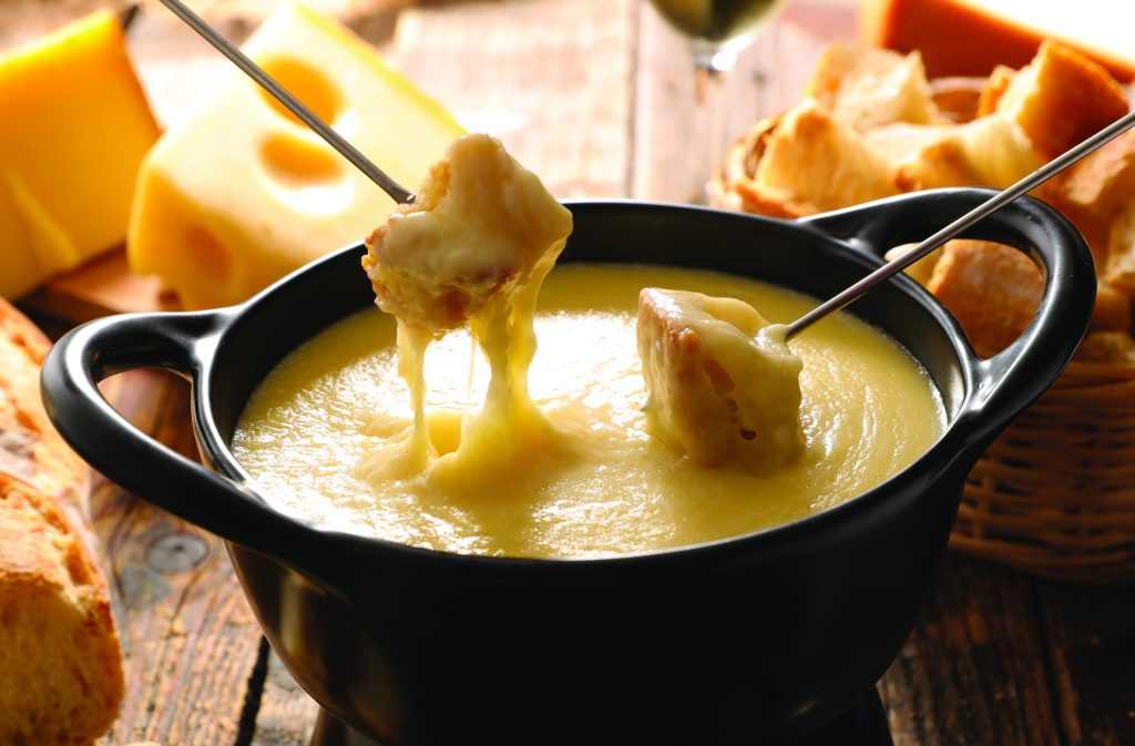 Pour les débutants, on vous propose la recette traditionnelle de fondue au vin blanc. C’est la plus simple à réaliser !