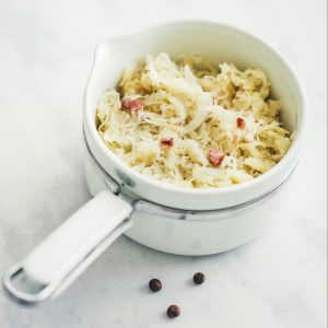Eh oui, chez fresh., vous pouvez composer la choucroute entre celle cuisinée au saindoux, lardons & Riesling et celle cuisinée à la graisse de canard & Riesling. En plus d’être délicieuse, la choucroute est élaborée à partir de chou originaire d’Alsace par notre partenaire Angsthelm & fils basé dans la capitale de la choucroute à Krautergersheim ! Pour les amateurs de nouveautés, nous vous proposons également la choucroute de la Mer cuisinée au Riesling, aux algues et aux échalotes et la choucroute d’Alsace IGP crue.