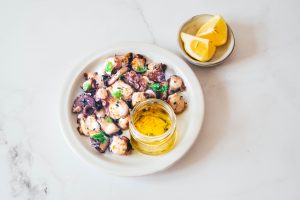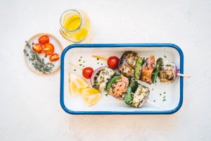 • Brochette duo de cabillaud et saumon aux herbes de Provence
