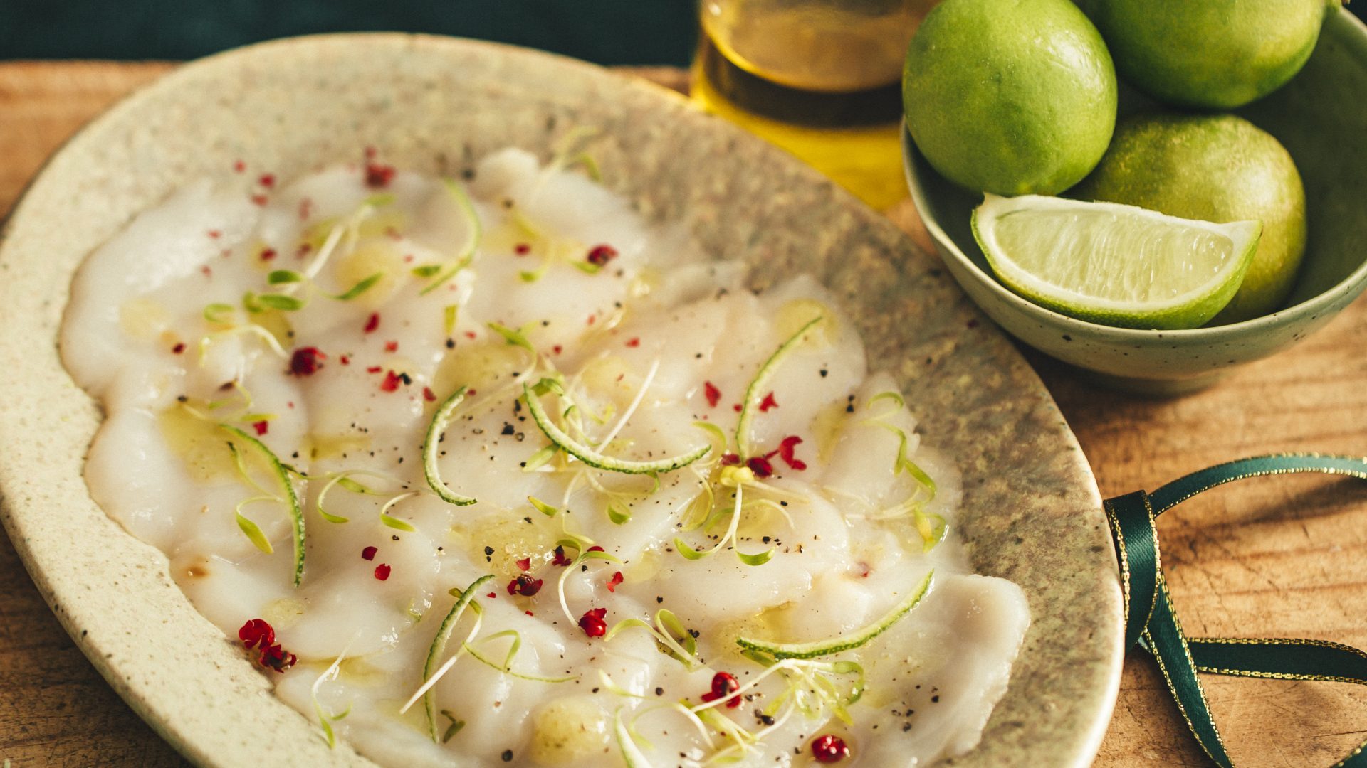 carpaccio de saint jacques, condiment coriandre et citron vert