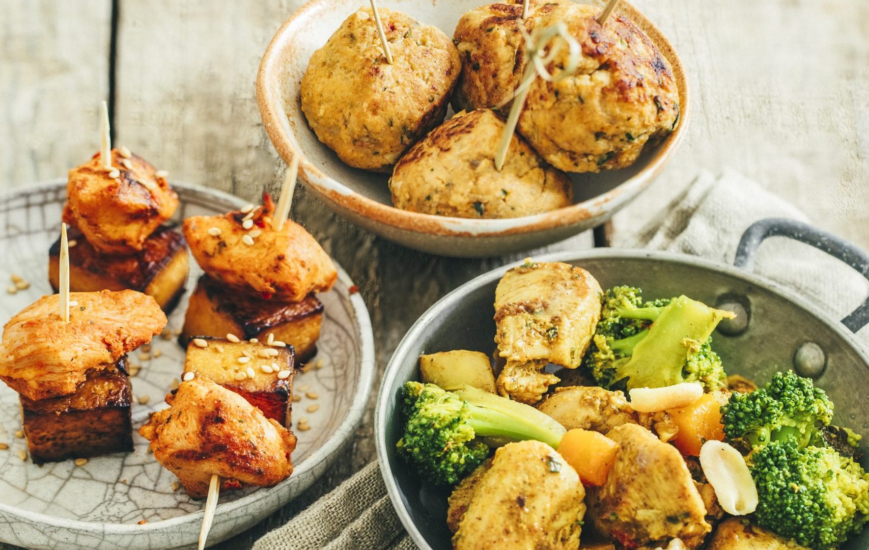Mixez une barquette d’émincés de poulet avec 50 g de champignon de Paris rissolés puis ajoutez un œuf battu et 4 cuillères à soupe de poudre de noisettes. Prélevez une partie de la préparation et roulez-la entre vos paumes, puis faites-la cuire quelques minutes dans un peu de beurre