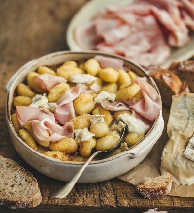Gratin de gnocchi au gorgonzola et à la mortadelle
