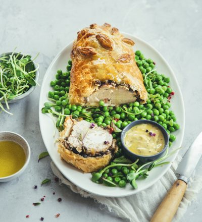 Parez votre filet si nécessaire, salez le puis faites-le colorer brièvement sur toutes ses faces avec un mélange de beurre et d’huile. Laissez ensuite refroidir de côté sur une grille et pensez à utiliser les sucs de cuisson pour en faire une sauce (rajoutez de l’eau, un fond de veau et laissez réduire jusqu’à une sauce sirupeuse).
