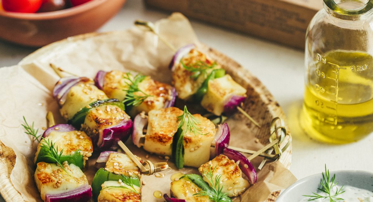 Coupez le halloumi en dés. Arrosez de marinade et laissez reposer une dizaine de minutes. Assaisonnez de sel et de poivre.