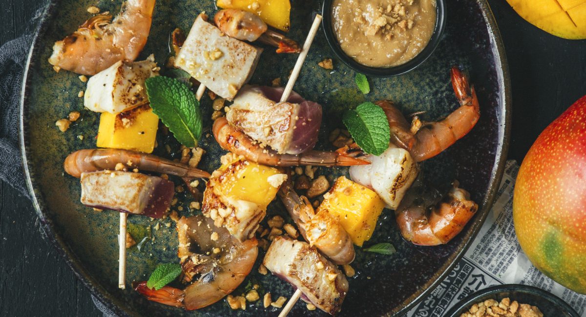 Préparez la sauce satay. Pour cela placez les cacahuètes dans le bol d’un robot et mixez par à coups jusqu’à obtenir une pâte épaisse. Ajoutez alors le reste des ingrédients et mixez à nouveaux quelques minutes.