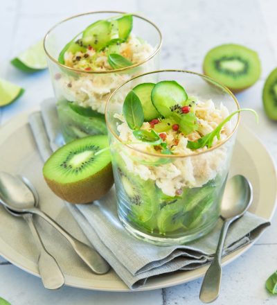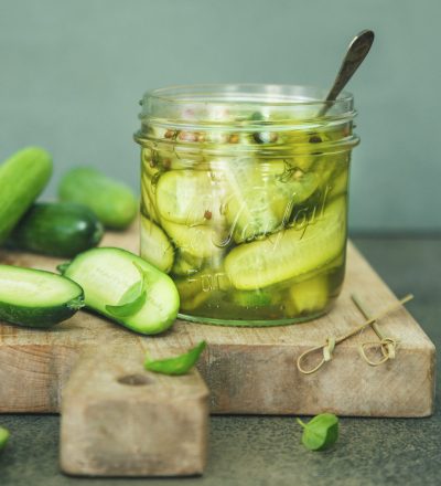 Rincez le concombre à l’eau claire et détaillez-le en fines lamelles. Hachez l’échalote.