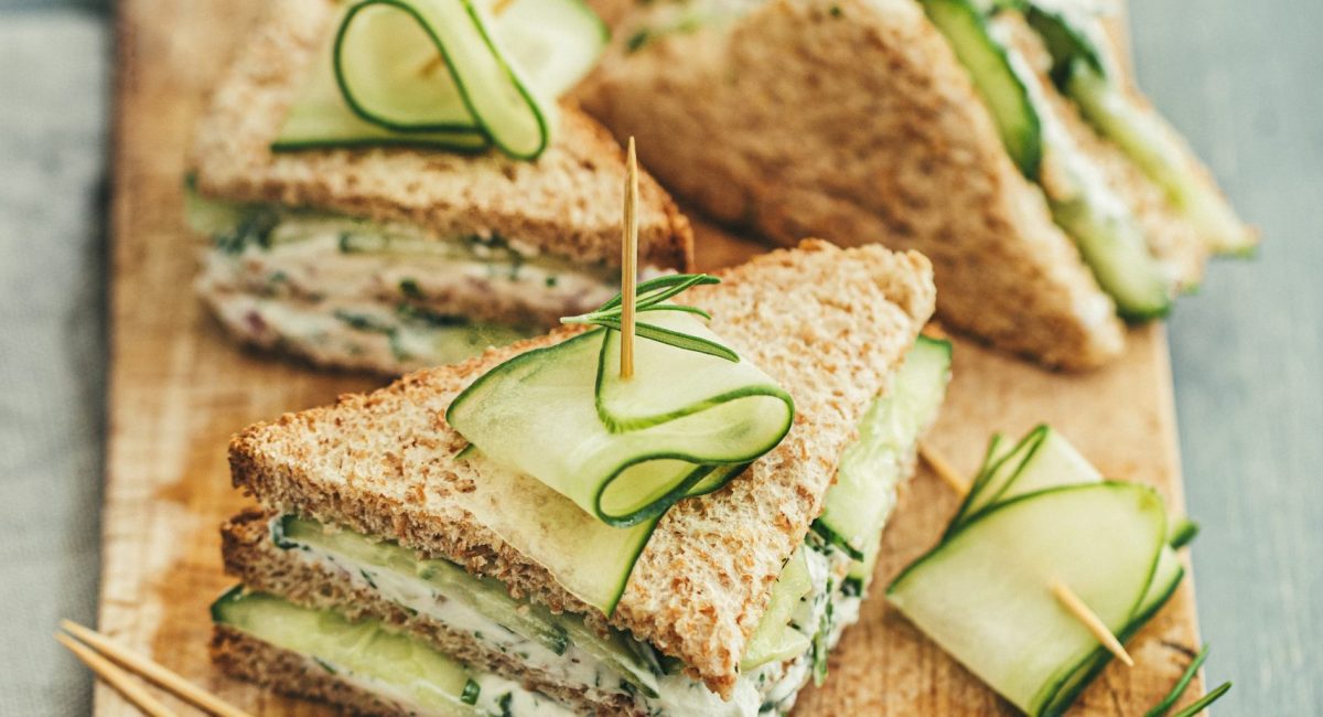 Disposez les lamelles de concombre sur le fromage frais et couvrez d’une deuxième tranche de pain. Découpez-les en triangle et dégustez sans attendre.