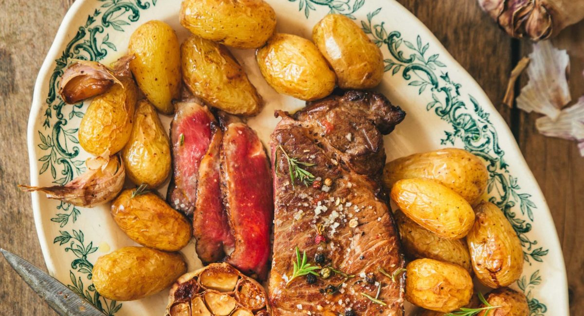 Coupez la viande en tranches fines et servez sans attendre avec les pommes de terre.