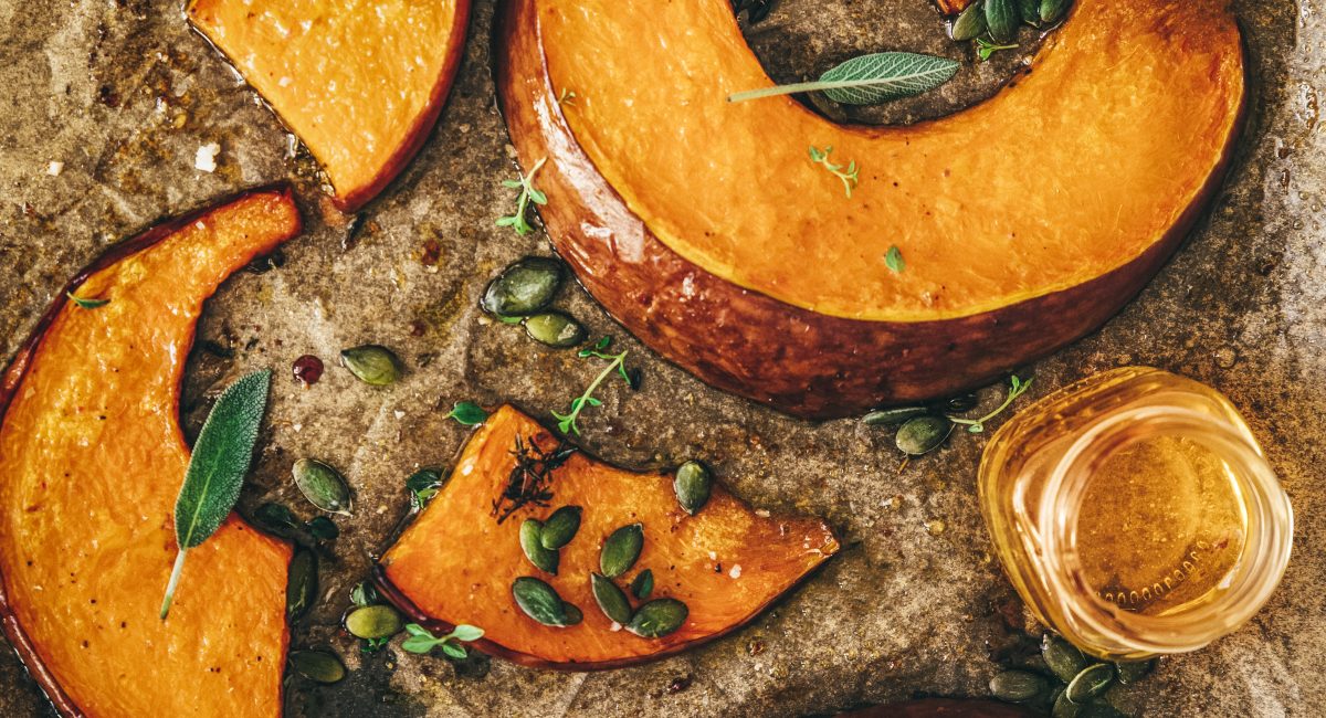 Déposez les morceaux de courge sur une plaque de cuisson recouverte de papier sulfurisé, assaisonnez de sel et de poivre, puis enfournez pour 30 minutes de cuisson.