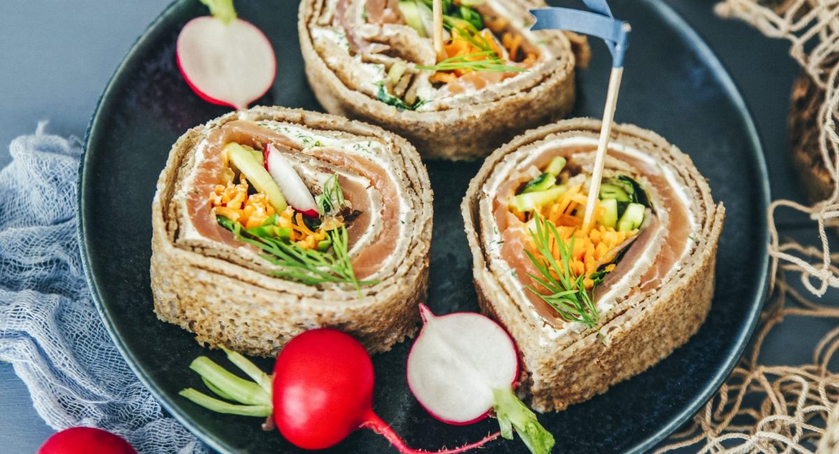 Etaler le fromage frais sur les galettes, puis ajouter 2 tranches de saumon fumé. Vous pouvez superposer les galettes deux à deux afin qu’elles ne se cassent pas lors du montage.