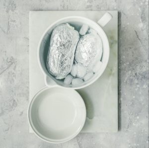 À la fin de la cuisson, retirez les ballotines de l’eau et placez-les immédiatement 1 heure dans de l’eau glacée. Réservez au frais dans sa ballottine au moins 24h avant de le servir.