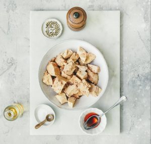 Coupez-le en tranches puis en cubes. Placez les cubes dans un saladier
