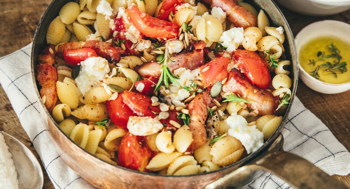 gnocchetti sardi aux tomates rôties, lard fumé et brocciu