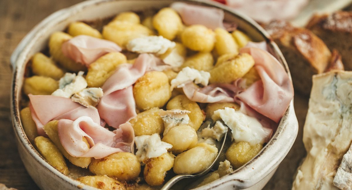 Beurrez un plat allant au four. Disposez les gnocchi dans le plat à gratin, puis nappez de crème au gorgonzola. Enfournez pour 20 minutes de cuisson. Servez bien chaud avec une salade verte et quelques tranches de mortadelle.