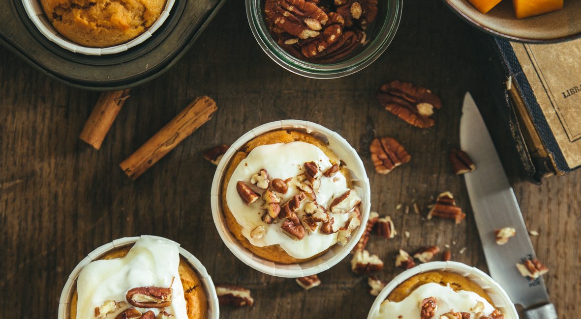 Au moment de servir décorez d’un peu de fromage frais détendu à la fourchette, de brisures de noix de pécan et d’un filet de sirop d’érable (ou de miel).