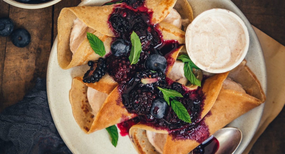 petites crêpes à la ricotta de bufflonne, mûres et myrtilles