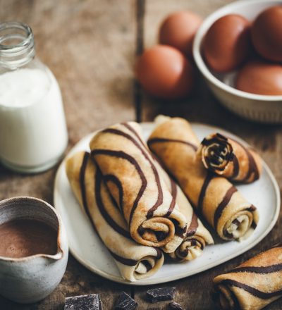 Garnissez les crêpes de mélange ricotta / amande et disposez un peu de compotée de fruits sur le dessus. Servez sans attendre avec quelques feuilles de menthe fraîche.