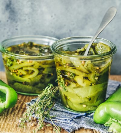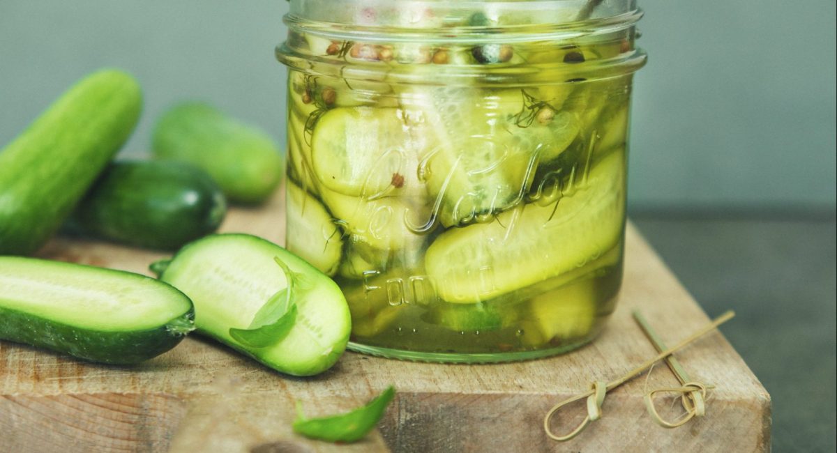 Disposez les lamelles de concombre dans le bocal stérilisé en les serrant le plus possible. Glissez quelques brins d’aneth à mesure que vous ajoutez les lamelles concombres.