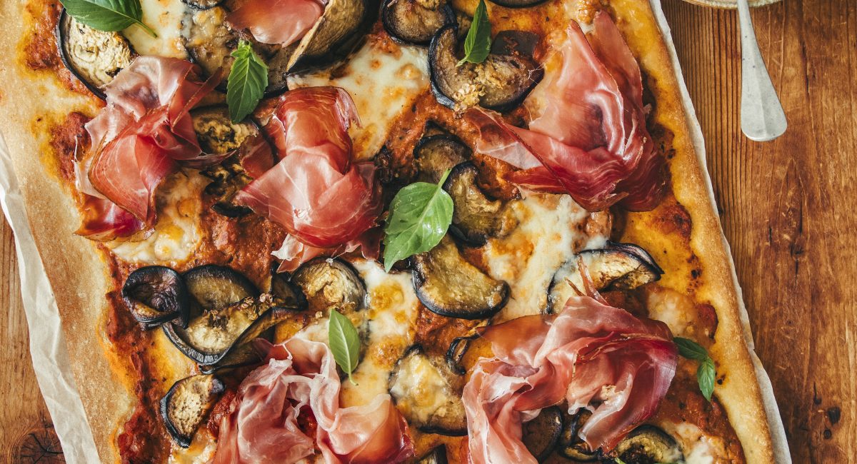 À la sortie du four, ajoutez le speck, quelques feuilles de basilic et servez sans attendre.