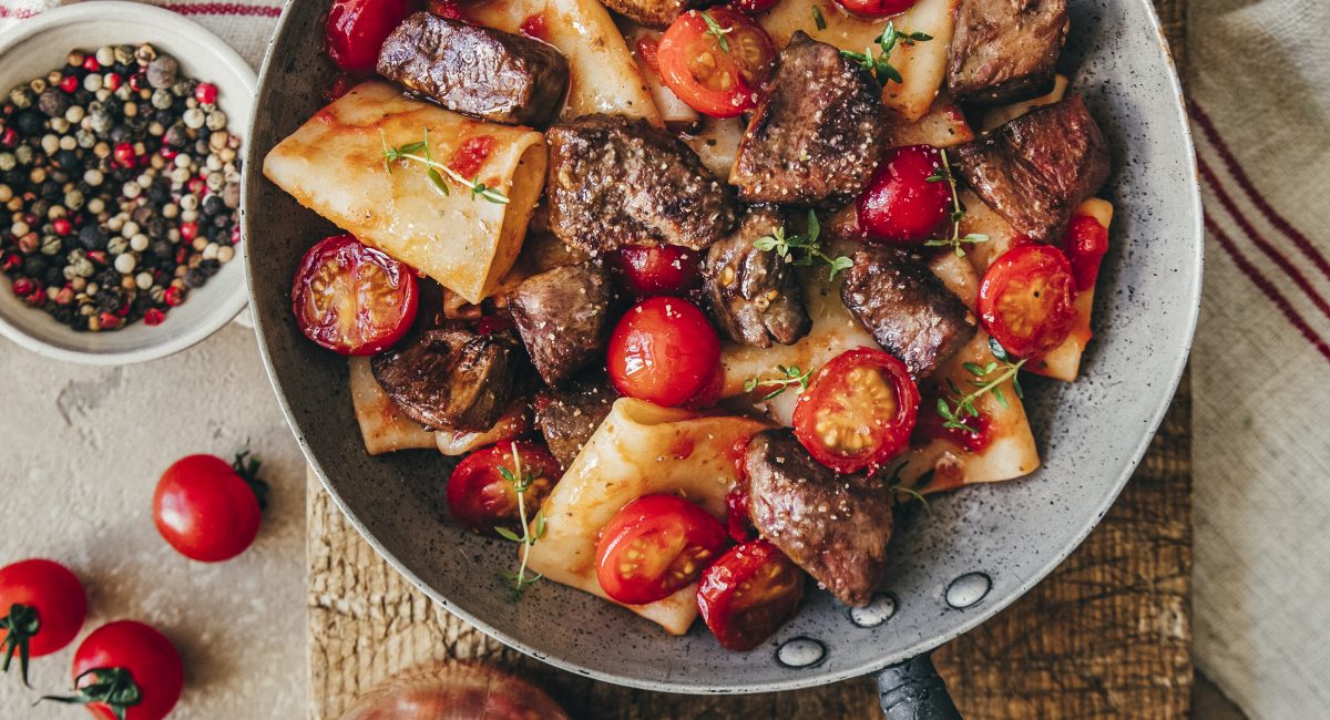 Retirez la peau des magrets et coupez-les en petits morceaux. Faites-les revenir pendant 2 à 3 minutes dans un filet d’huile d’olive. Ajoutez les tomates cerises et poursuivez la cuisson 1 à 2 minutes. Assaisonnez de sel et de poivre.