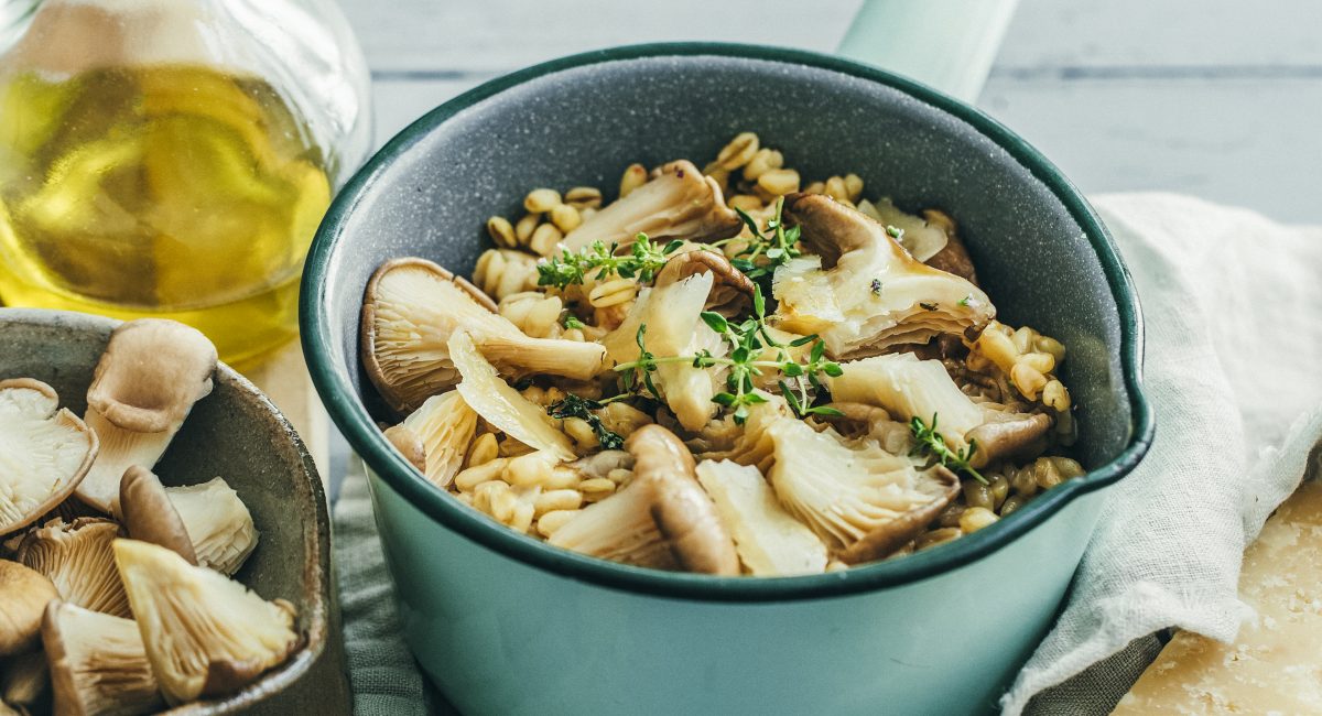 Dès que le blé à la consistance souhaitée ajoutez le mascarpone, le parmesan en poudre et les pleurotes et assaisonnez de sel et poivre du moulin. Servez bien chaud.