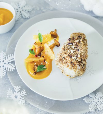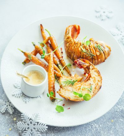 Dressez les jeunes pousses, le homard, l’avocat et les suprêmes d’agrumes dans un grand plat de service. Rincez et effeuillez la coriandre, puis ciselez-la finement. Au moment de servir, ajoutez la coriandre fraîche et accompagnez le tout de vinaigrette de fruit de la passion.