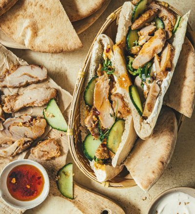 Rincez les champignons de Paris à l’eau claire et coupez-les en fines lamelles. Coupez les filets de poulet en morceau.