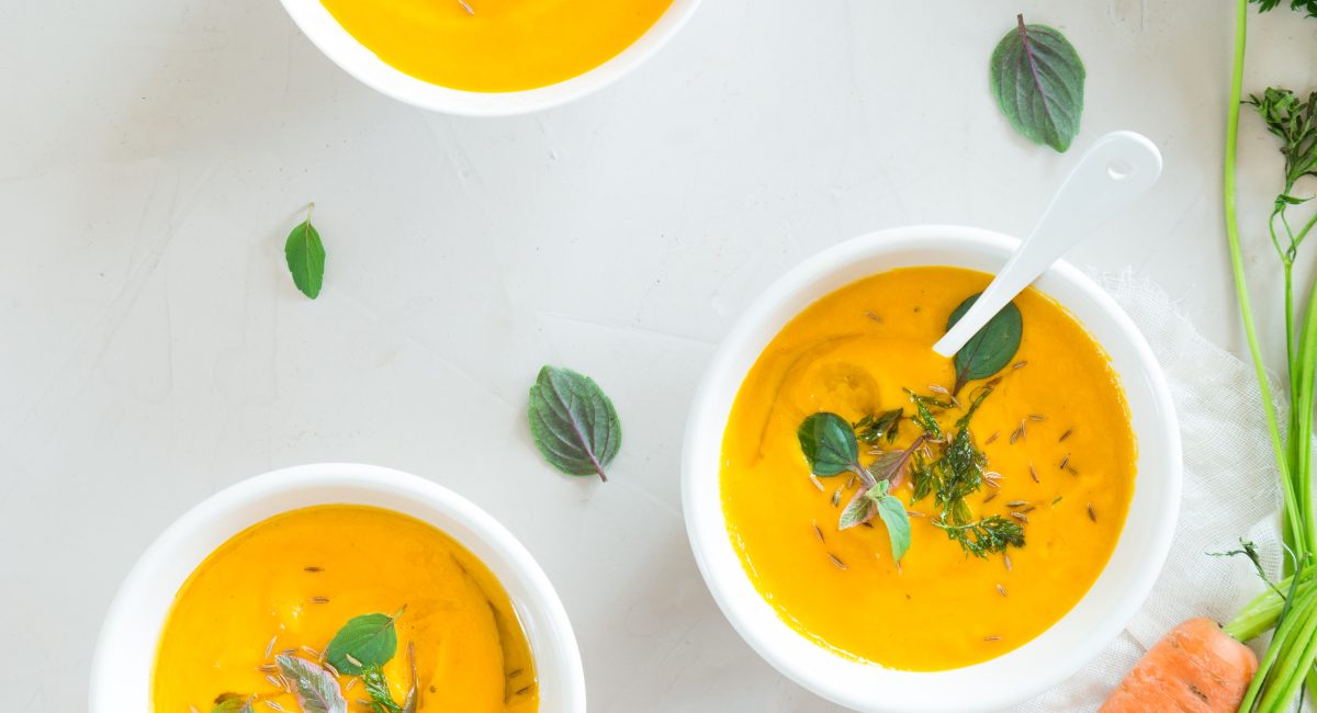 Laissez refroidir, ajoutez le basilic et le cumin, le lait de coco et le jus d’orange et mixez le tout. Assaisonnez d’un peu de fleur de sel et de poivre du moulin.
