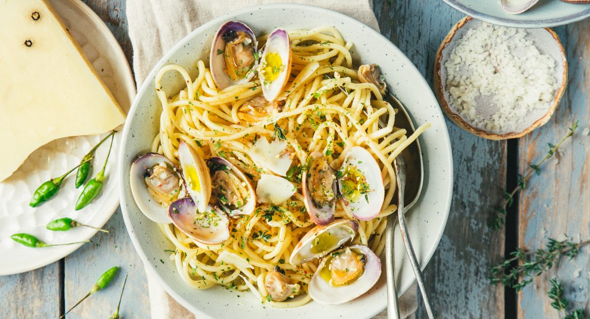 Ajoutez les palourdes, le vin blanc, puis laissez cuire à couvert pendant 5 à 10 minutes, le temps que tous les coquillages s’ouvrent.