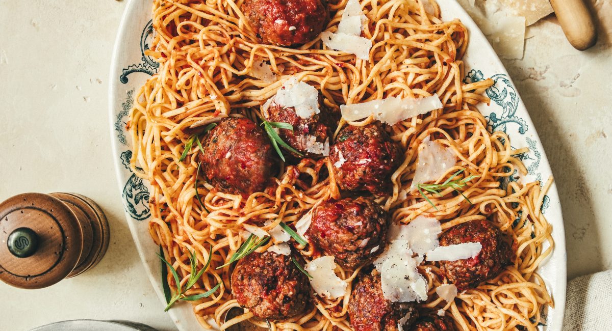 Ajoutez les tagliolini dans la poêle avec les boulettes et la sauce. Mélangez délicatement pour enrober les pâtes de sauce.
