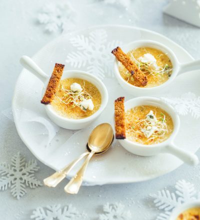 Enfournez pour 20 minutes de cuisson. Au moment de servir ajoutez le reste de roquefort émietté. Accompagnez d’une salade de jeunes pousses.
