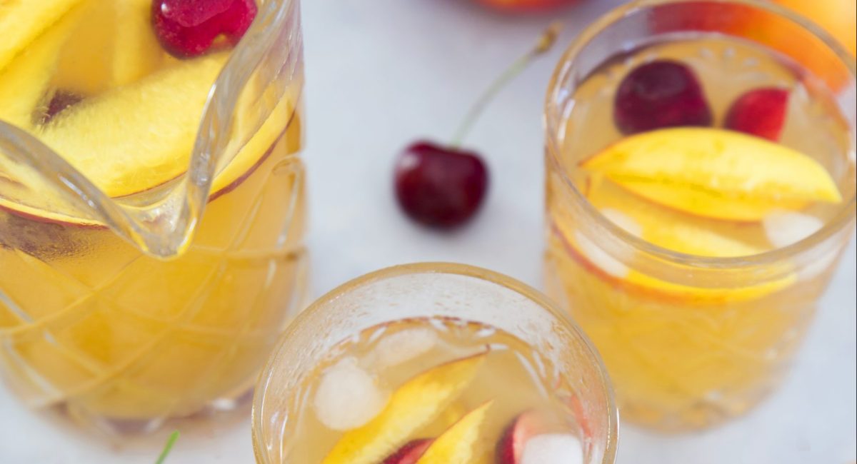 Rincez les nectarines restantes et coupez-les en fines lamelles. Rincez les cerises et coupezles en 4. Au moment de servir, ajoutez les fruits frais et quelques glaçons.