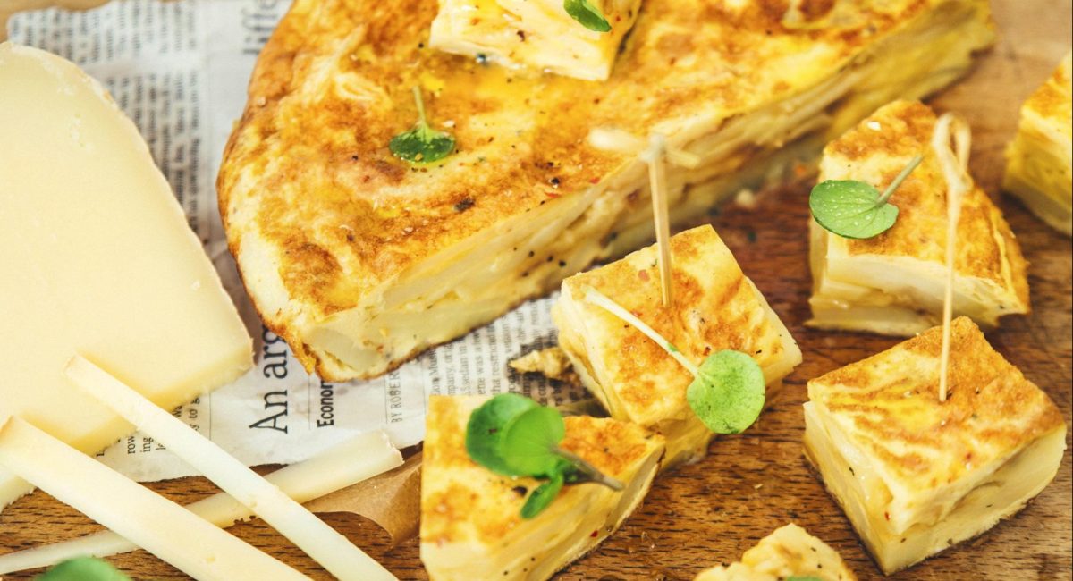 Posez un grand plat sur la poêle, maintenez-le avec la main et retournez l’ensemble de manière que l’omelette soit à l’envers sur le plat. Glissez-la à nouveau dans la poêle, côté cuit au-dessus, et faites cuire l’autre face à nouveau 5 minutes afin qu’elle soit bien colorée.