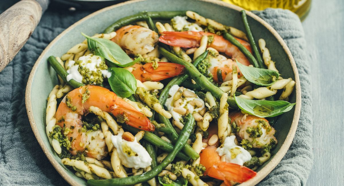 Égouttez les trofie. Ajoutez les haricots, les crevettes et le pesto et mélangez pour bien les enrober. Faites chauffer à feu doux 1 à 2 minutes, le temps que la sauce soit bien chaude.