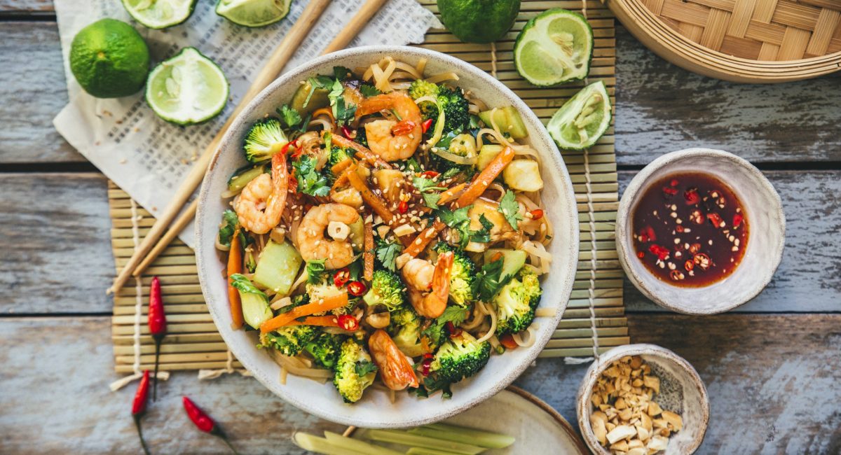 Portez un grand volume d’eau à ébullition et faites cuire les nouilles de riz le temps indiqué sur l’emballage. Égouttez et réservez.